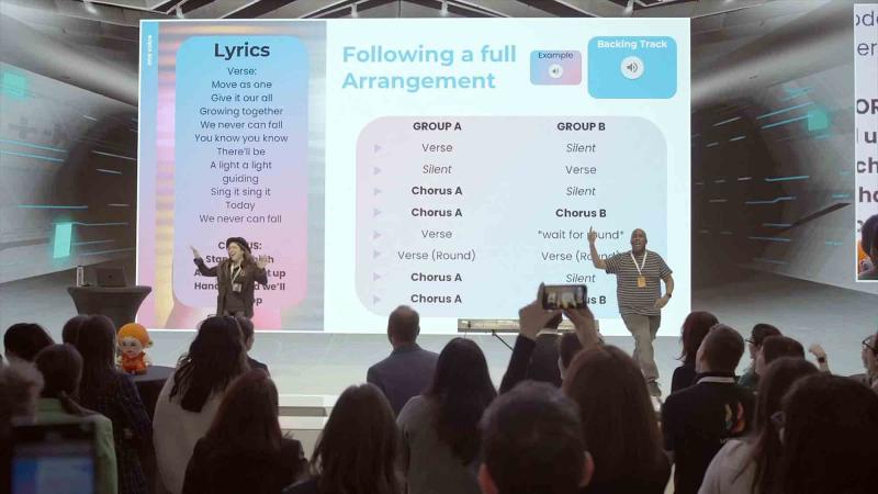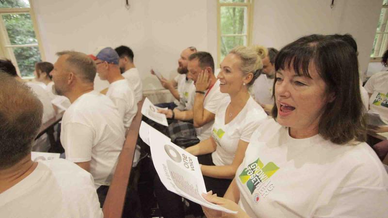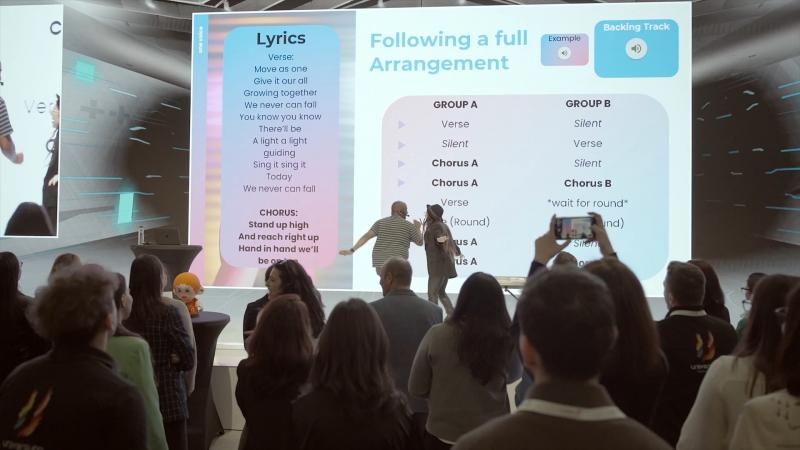 In One Voice, guided by an experienced vocal instructor participants are led through a series of fun exercises that stretch the body and voice. As confidence builds, they are then challenged to achieve more and more until, finally, the whole team comes together in song uniquely tailored to the group. In One Voice, they show what can be achieved when they really open their hearts, minds and mouths. Their final song can also be made available for them to take home as a special reminder of this fantastic collective experience.